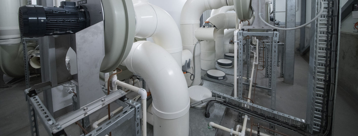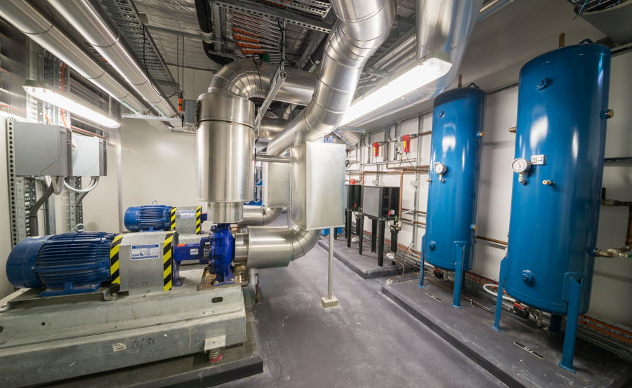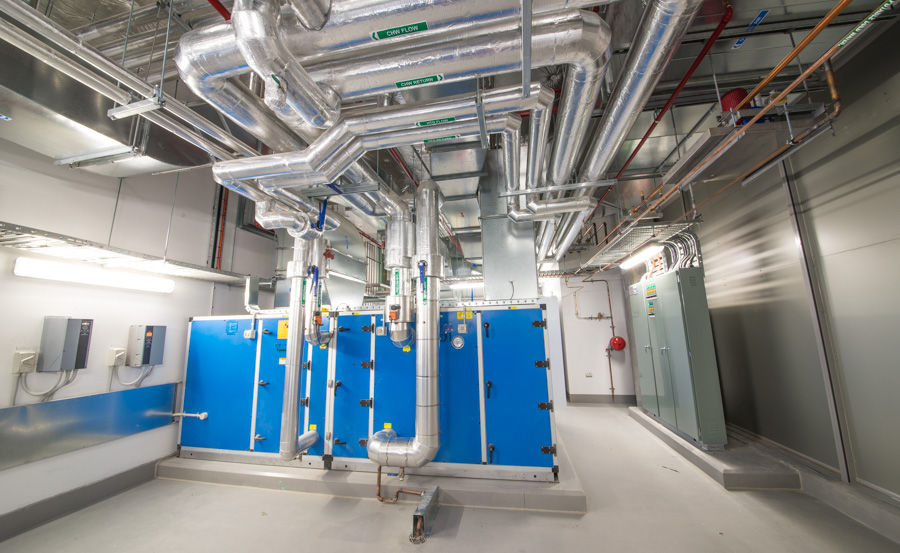 The mechanical design features highly specialised laboratory HVAC systems, heat recovery ventilation and mixed-mode ventilation to the atrium.